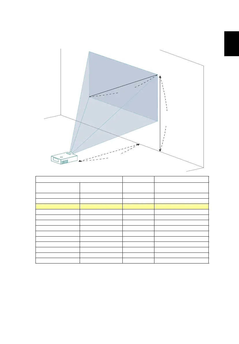 To obtain an image size of 60" set the projector at a distance 0.7 m from the