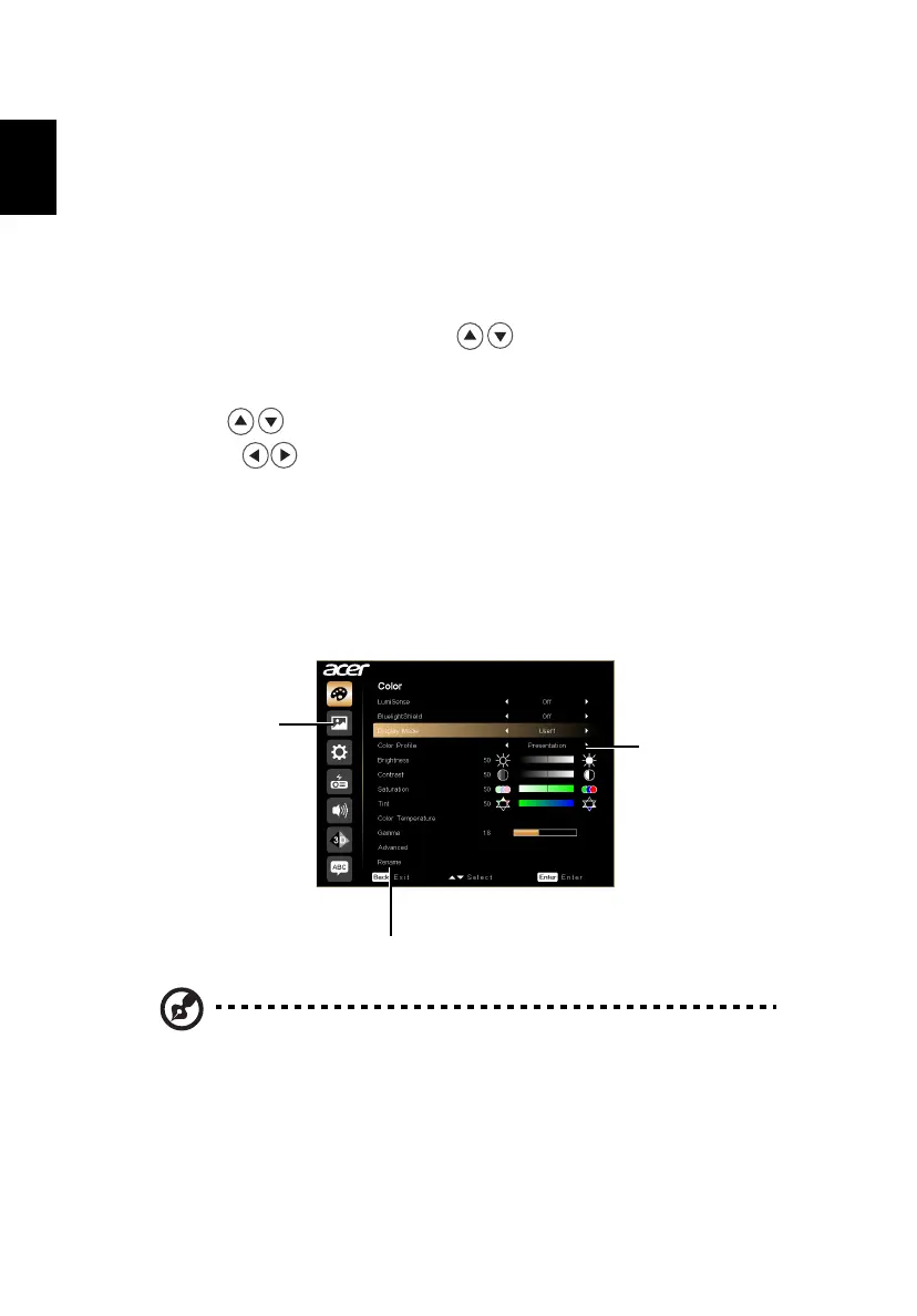 • To exit OSD, press "BACK" on the remote control or control panel. The