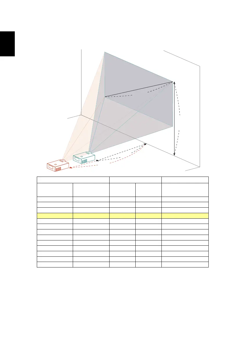 To obtain an image size of 60" set the projector at a distance 2.0 m and 2.2 m