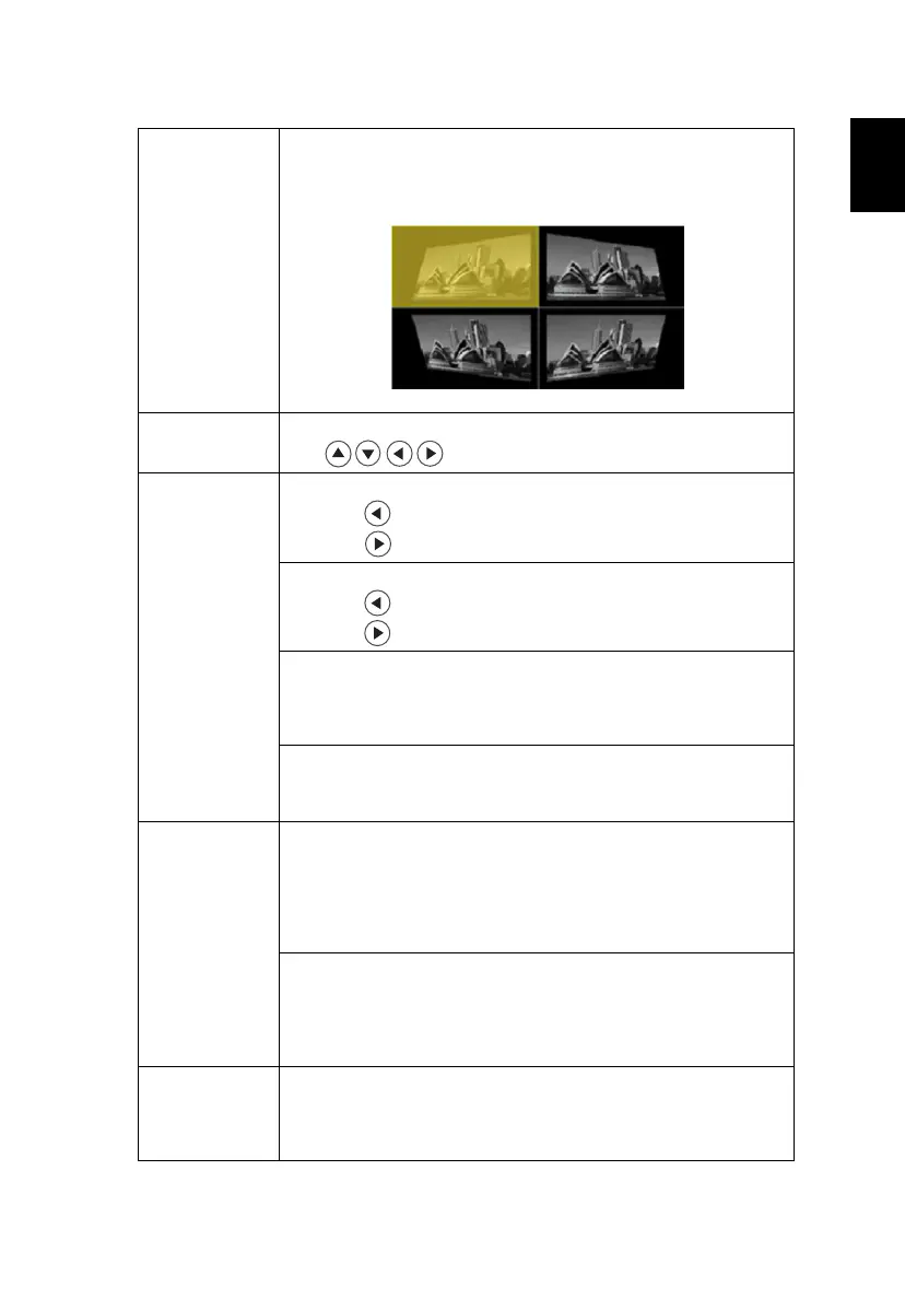 • Image Shift: Shifts the projected image by pressing