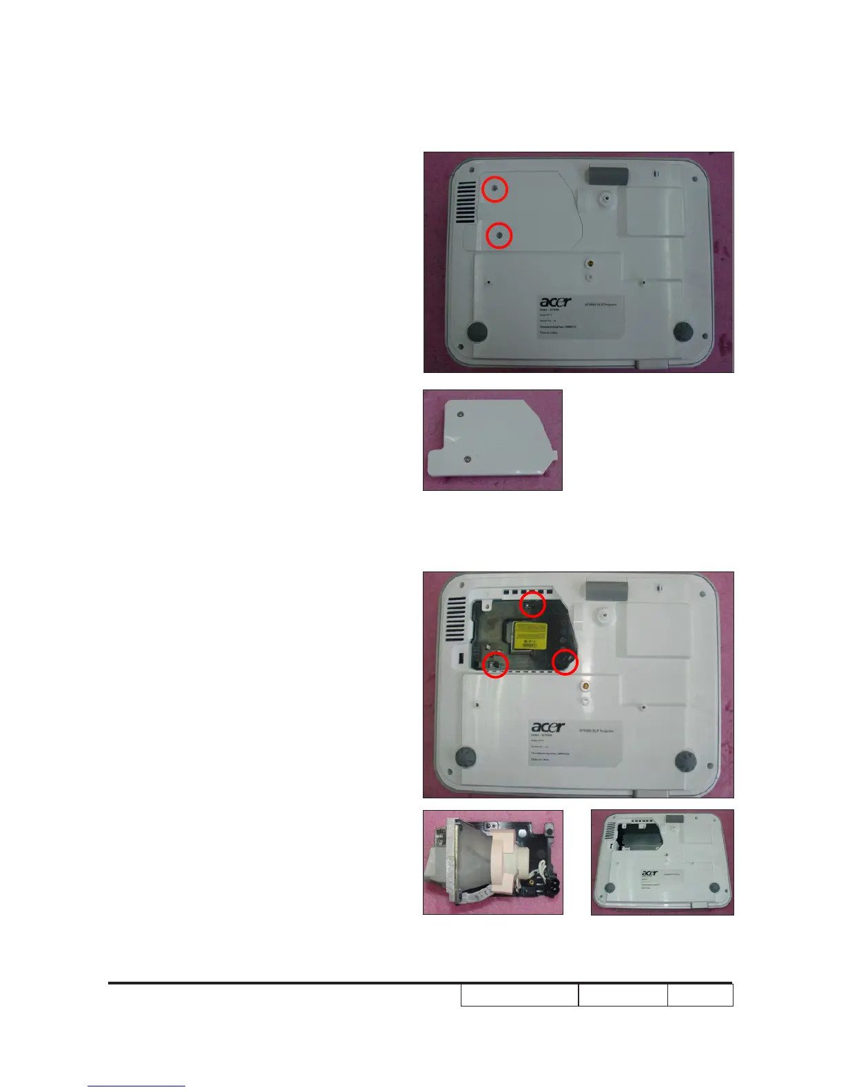 Acer H7530D - Disassemble Lamp Cover Module; Disassemble Lamp Module