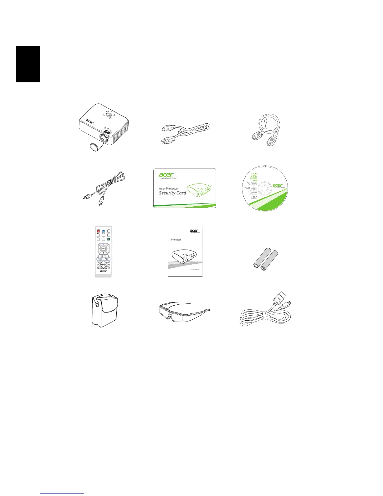 Carrying case 3D glasses (Optional) MHL cable (Optional)