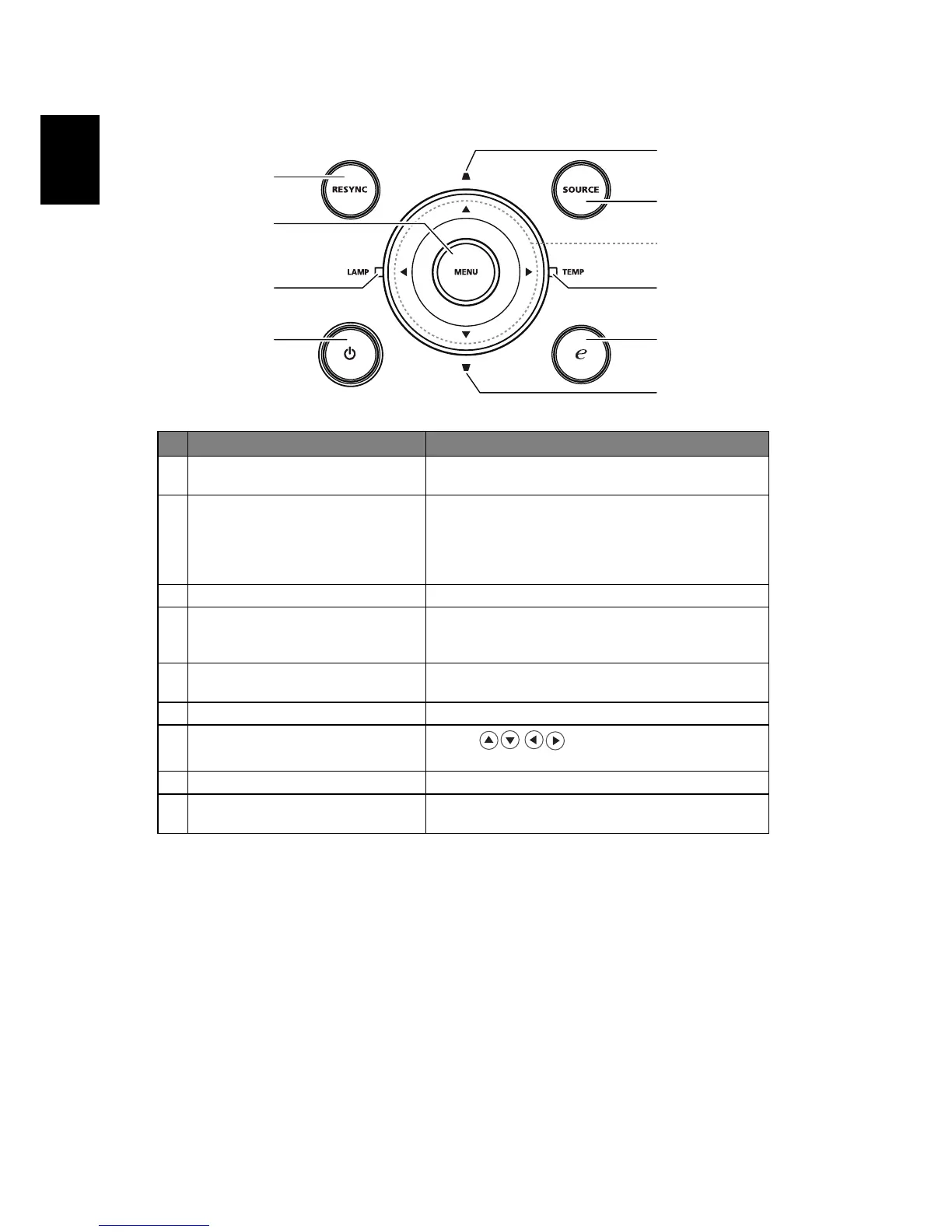 1 RESYNC Automatically synchronizes the projector to the