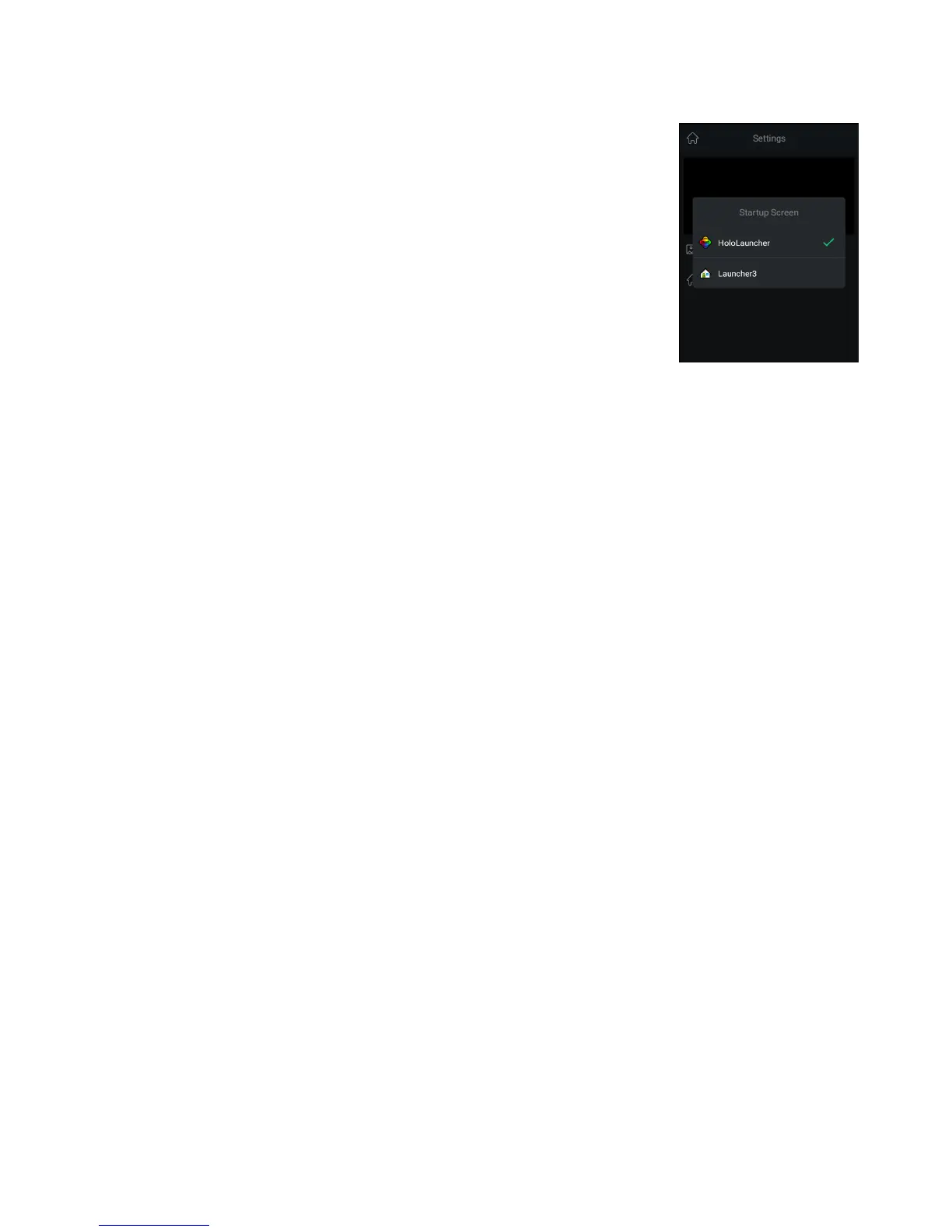 Tap Startup screen, then HoloLauncher.