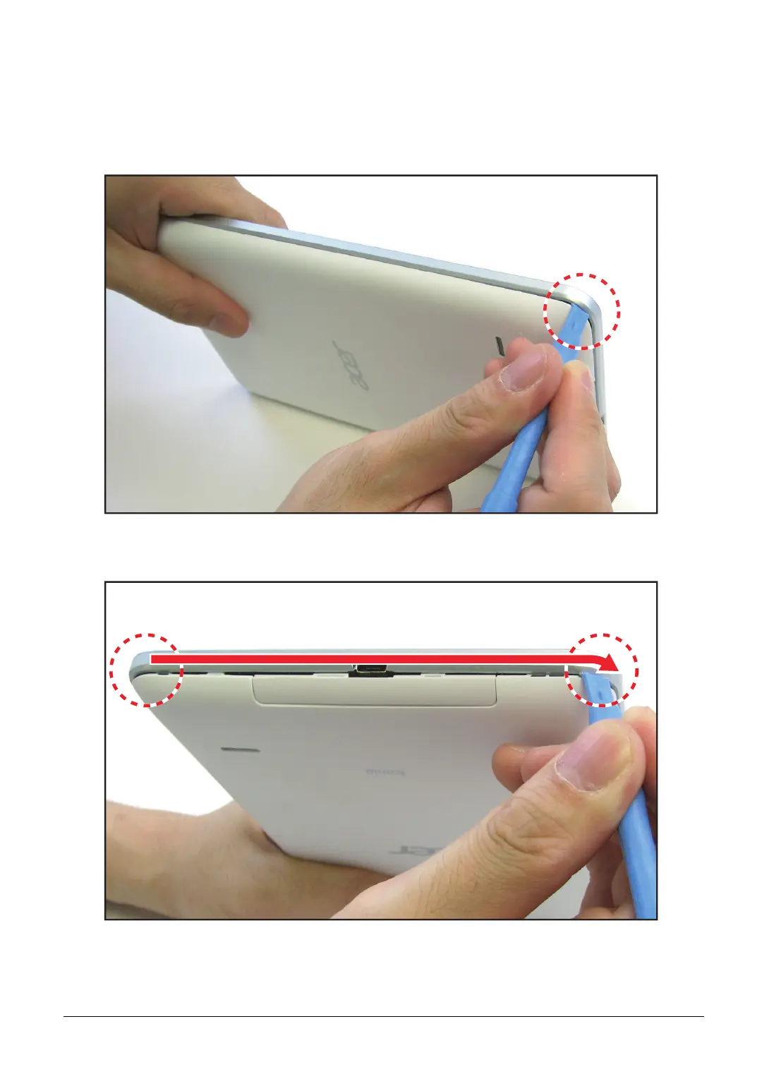 1. Using a plastic pry, pry into the lower-left corner of the tablet to slightly create an opening.