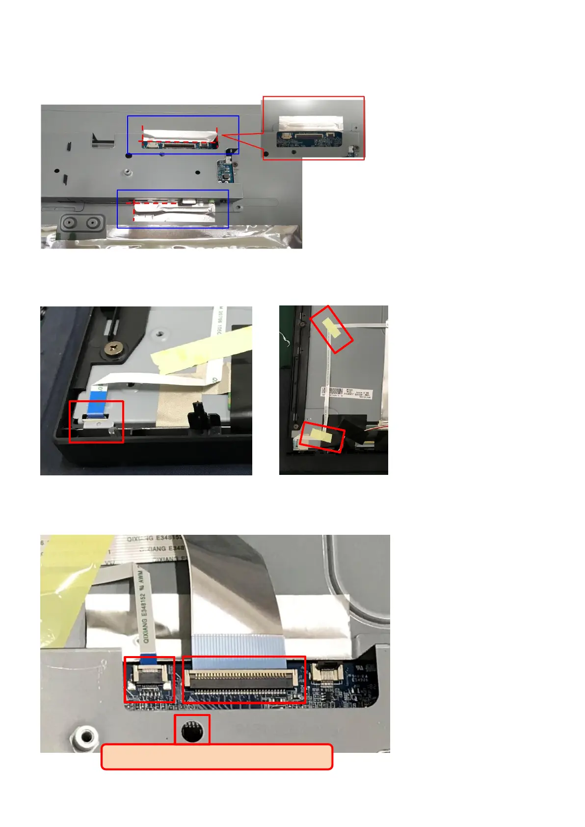 Step5. Insert 10 pin back light FFC to panel and main board, use yellow tape to fix. (Tape in red circle).