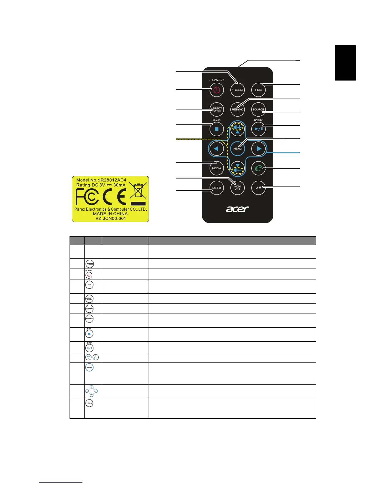 6 RESYNC Automatically synchronizes the projector to the input source.