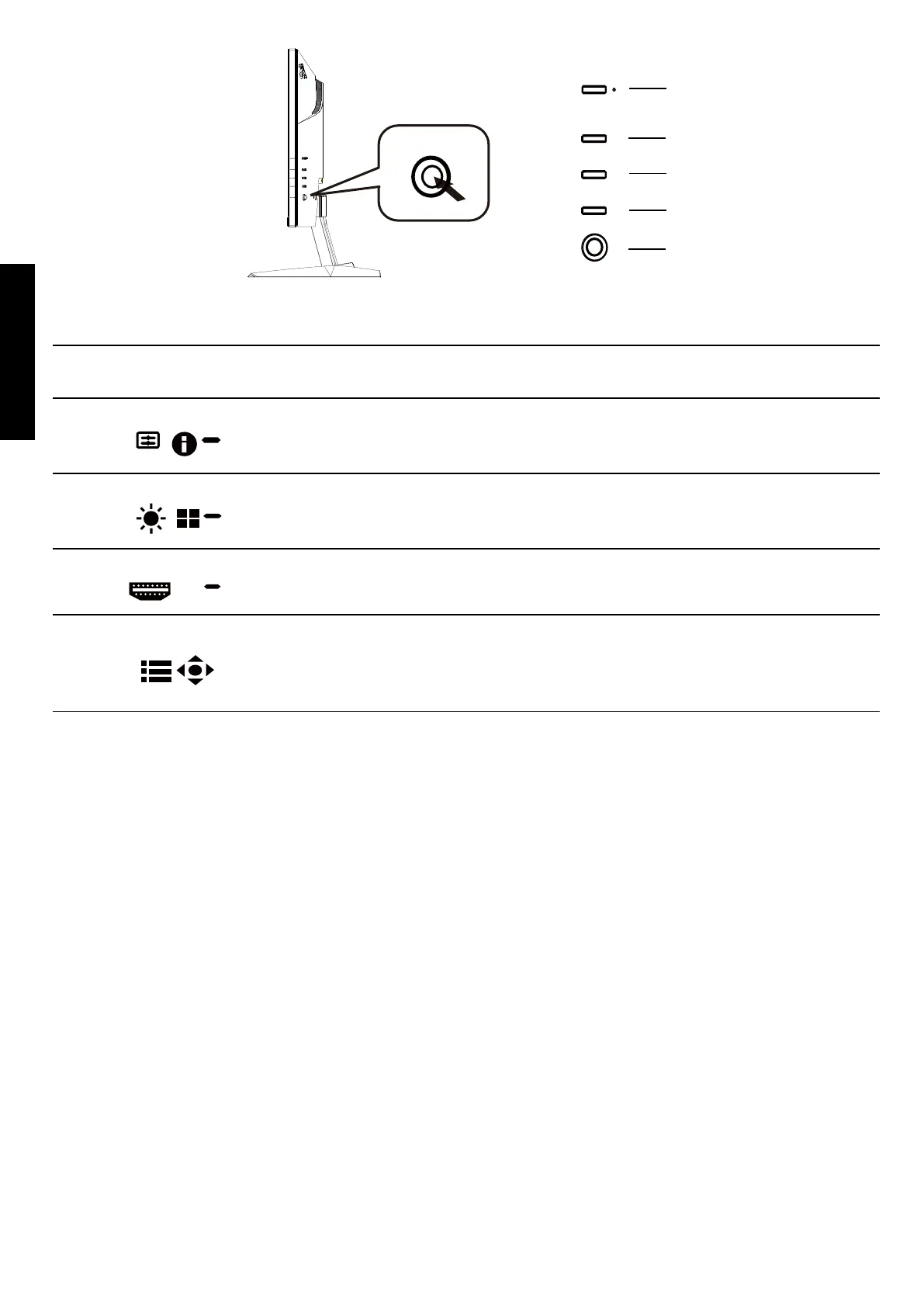 Turns the monitor on/off. Blue indicates power on. Amber indicates standby/power