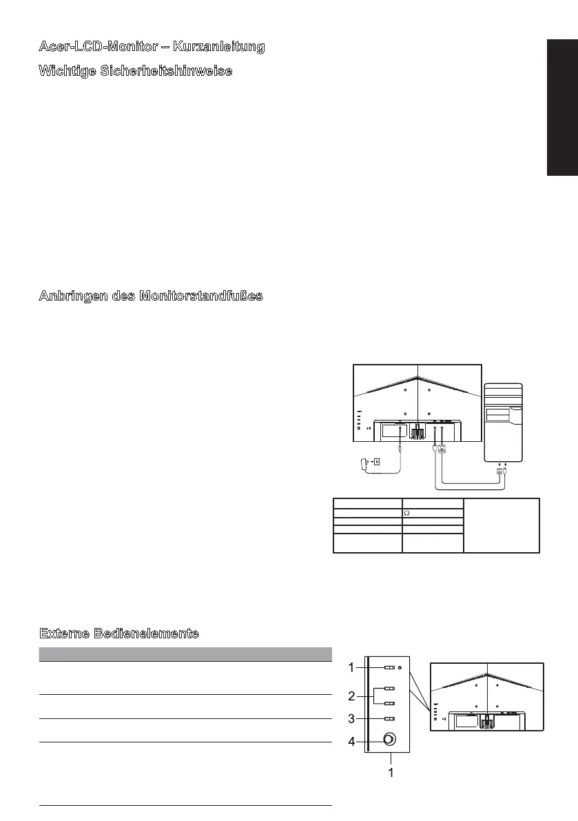 • Flüssigkeit darf niemals direkt oder indirekt auf den Bildschirm oder in das Monitorgehäuse gelangen.