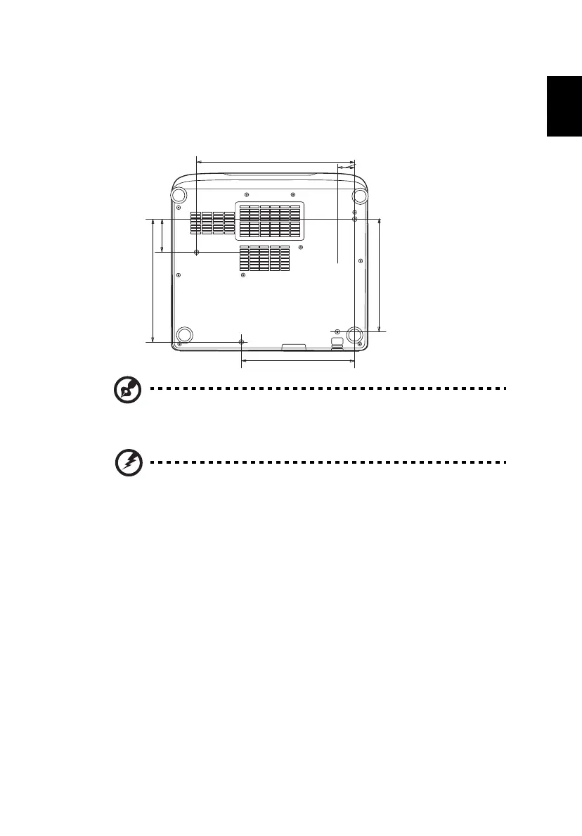 If you wish to use a third party ceiling mount kit, please ensure the screws used