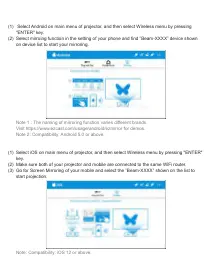 Go for Screen Mirroring of your mobile and select the ”Beam-XXXX” shown on the list to