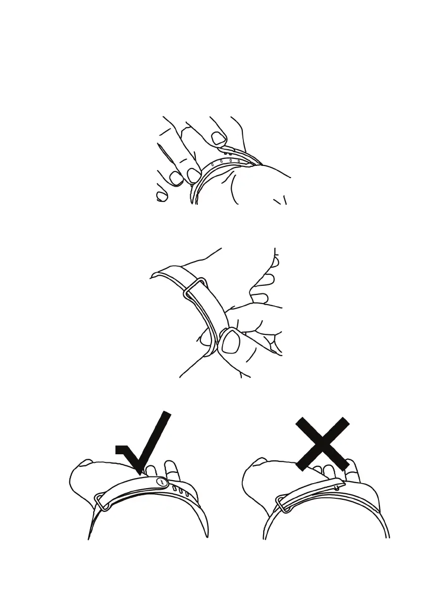 此相疊,然後將夾扣置於最適合您手腕的兩個孔洞上。