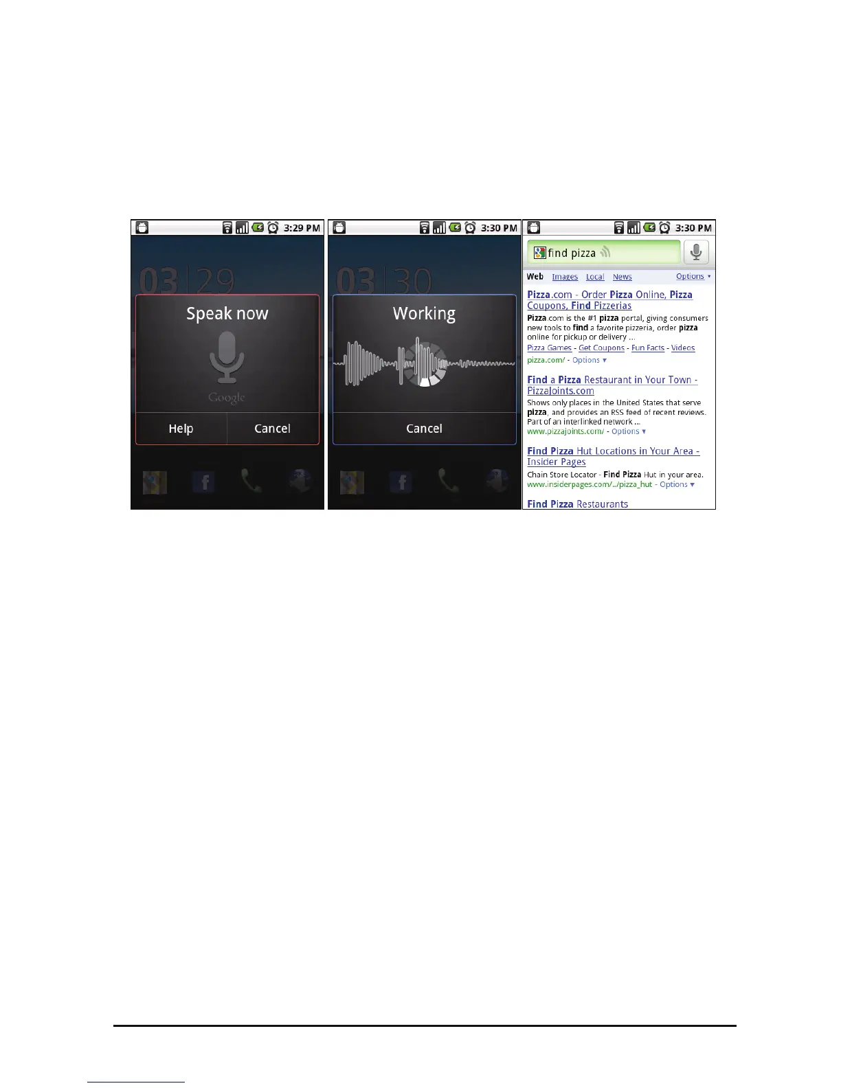 the Search button again to display the “Speak now” prompt, and state your