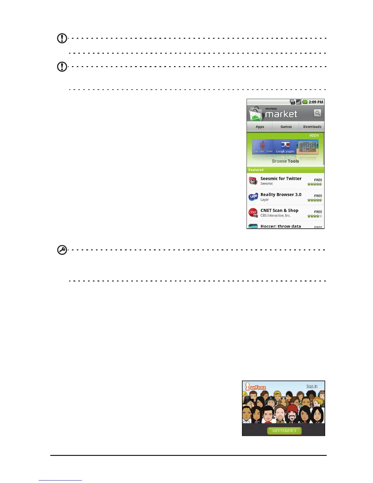 Note: The Android Market may not be available in all countries and regions.