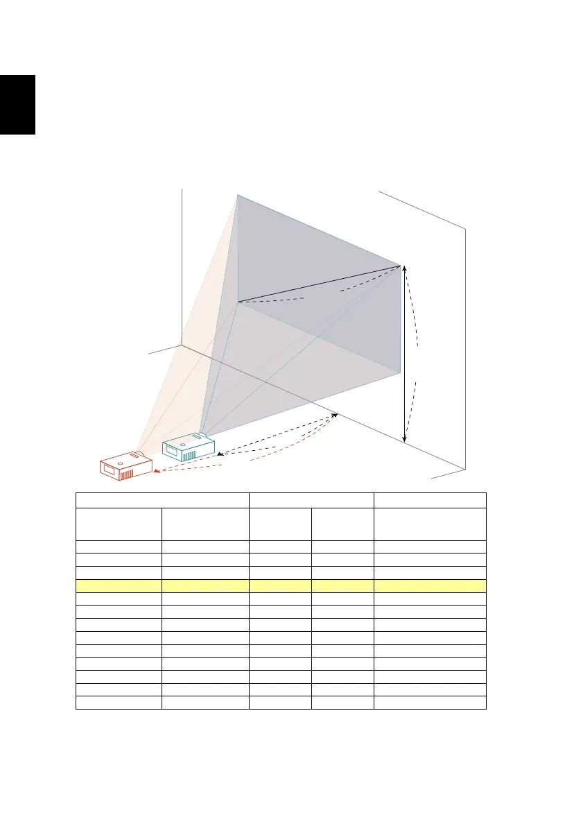 To obtain an image size of 60" set the projector at a distance 2.0 m and 2.2 m
