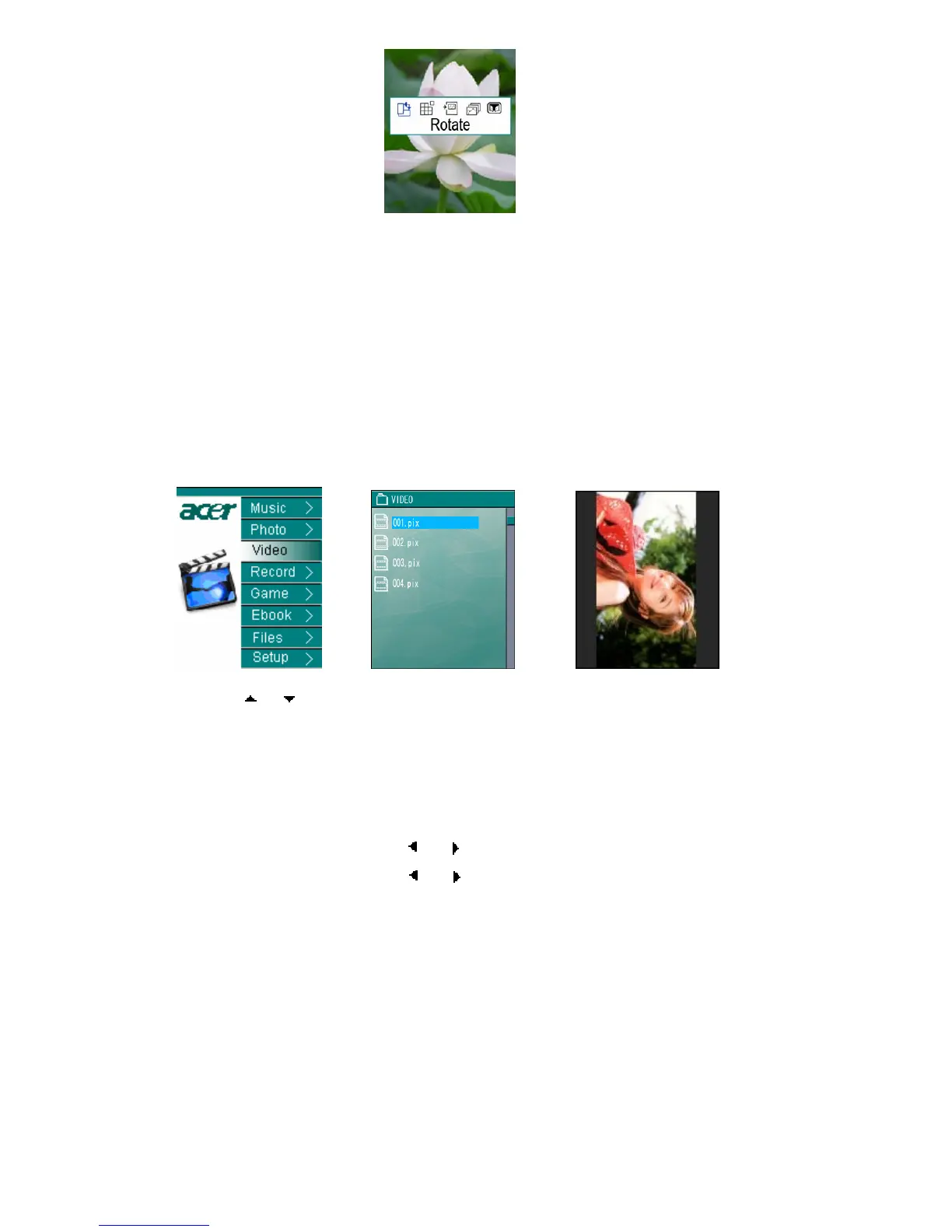 b) When playing video, long push “ ”or“ ”to realize the backward and forward within a