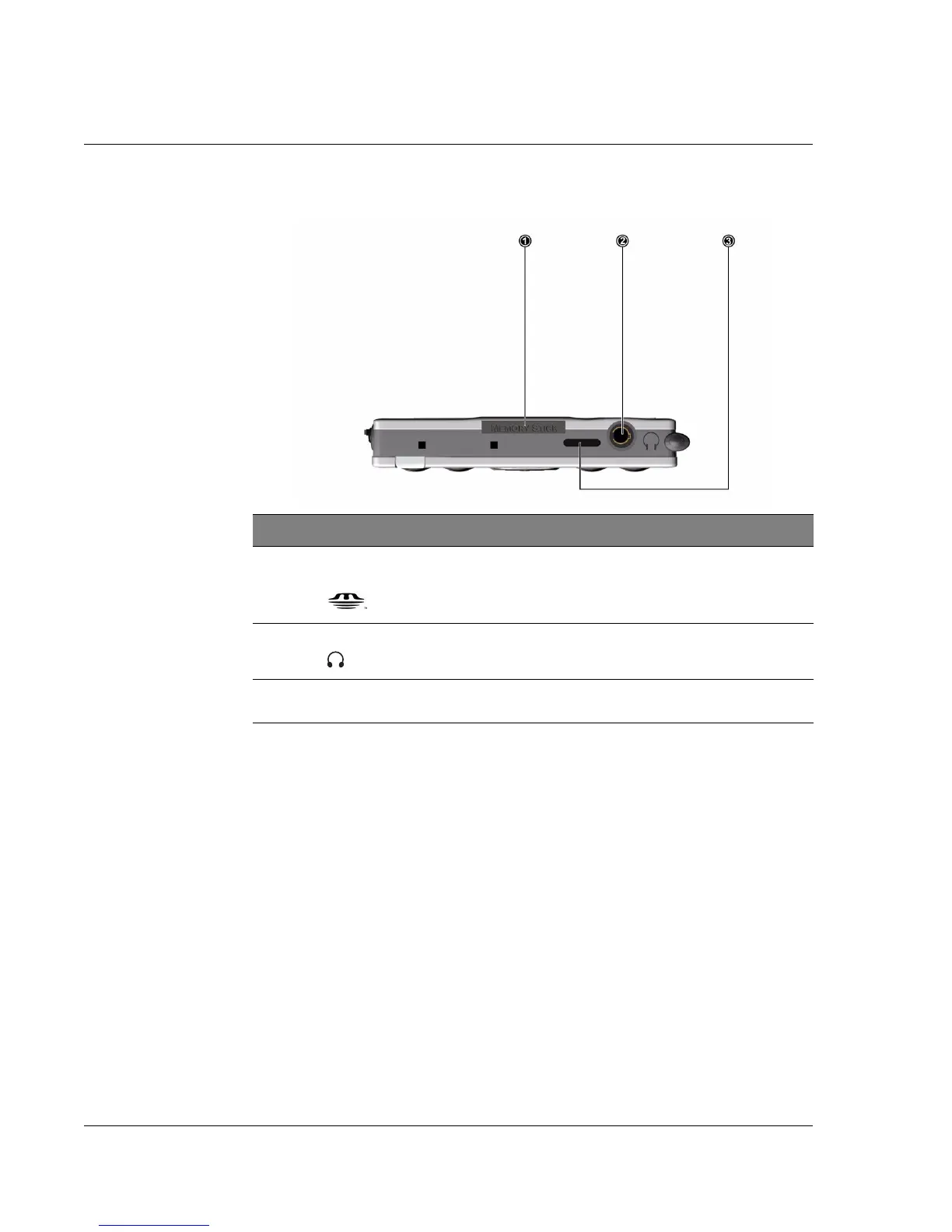 2 Earphone jack Connects to audio line-out devices (earphones/headphones).