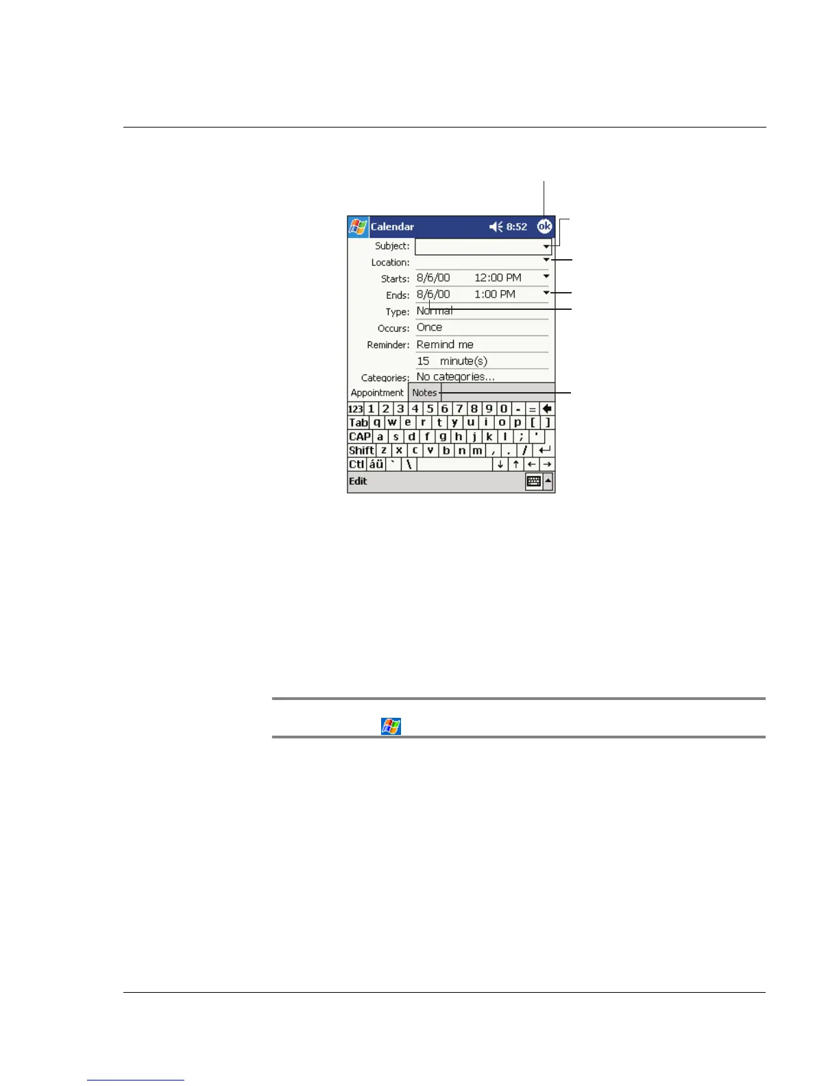 TIP: If you select Remind me in an appointment, your handheld will remind you according