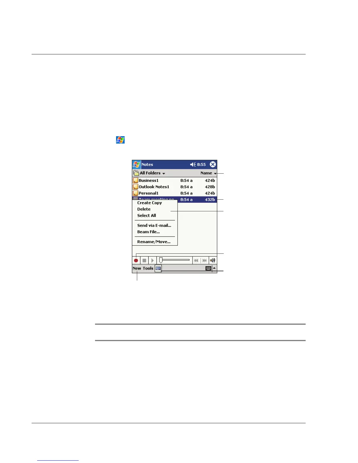 in a note. If a note is open when you create the recording, it will be included in the