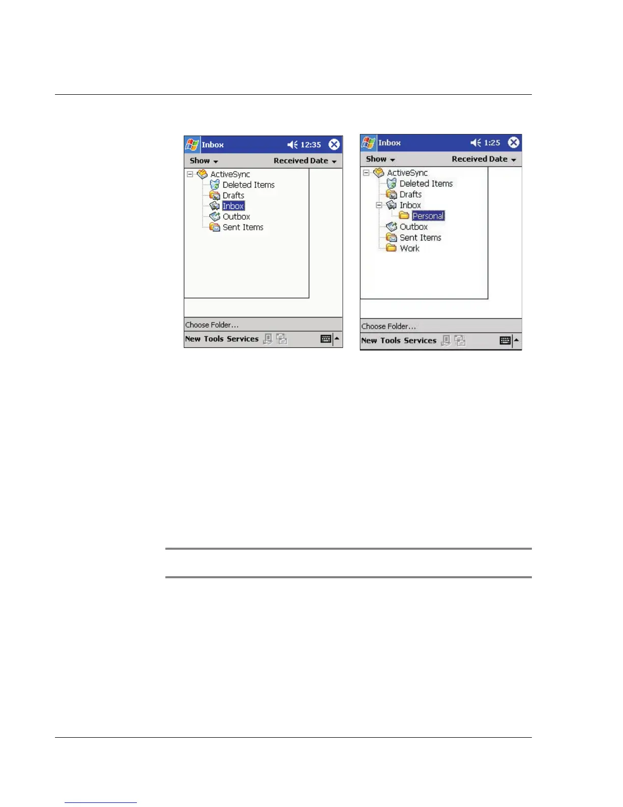 computer to the ActiveSync folder in Inbox on your handheld. By default, you