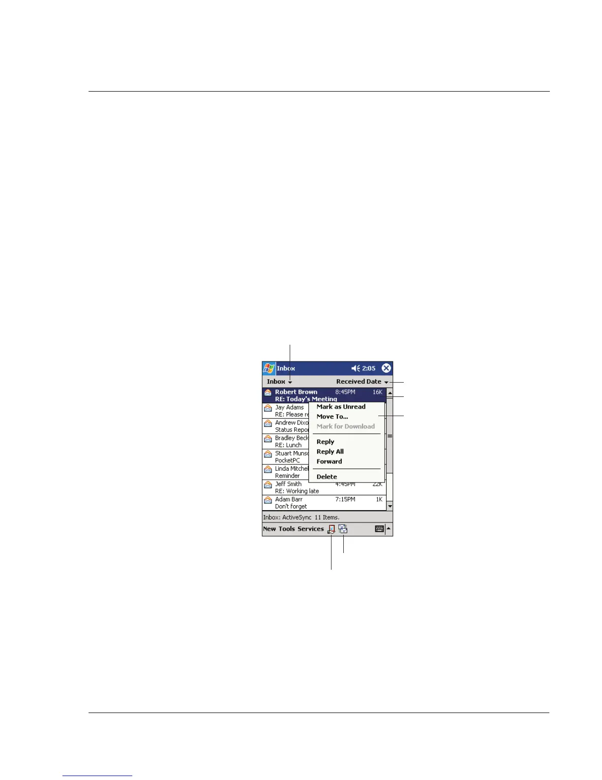 When you receive a message, tap it to open it. Unread messages are displayed in bold.