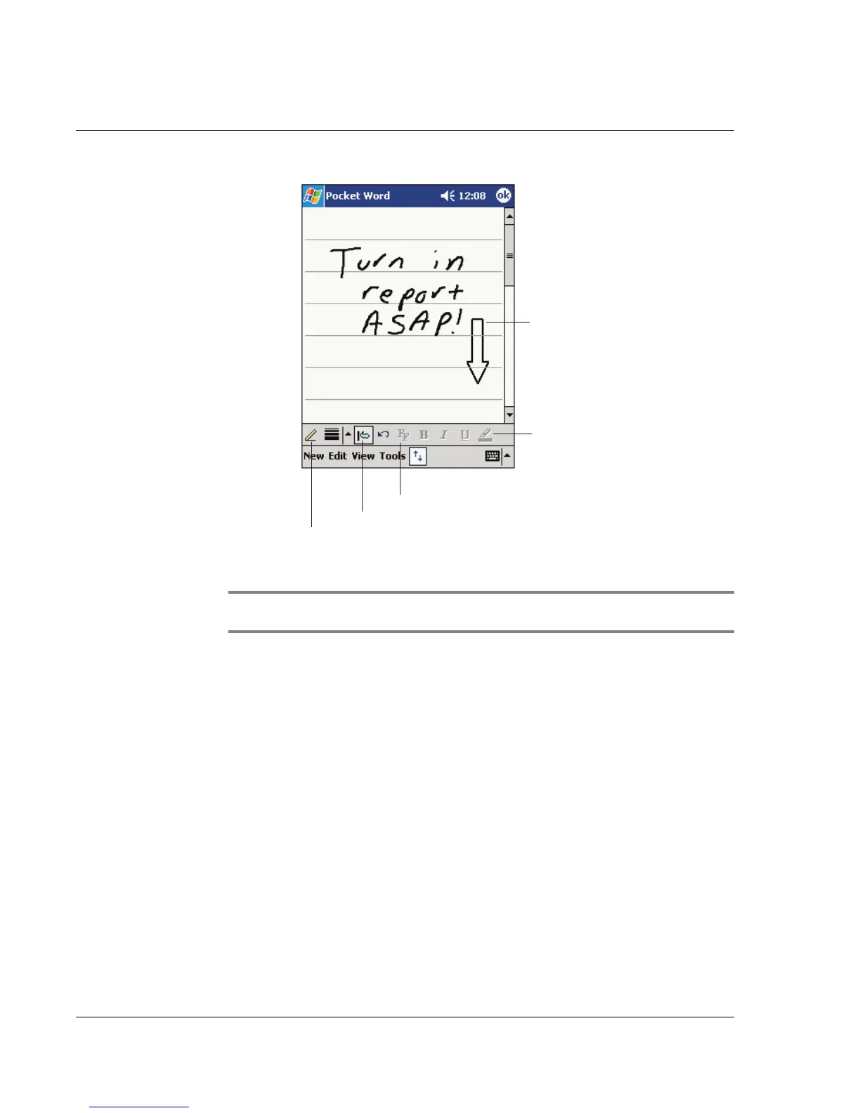 NOTE: Written words are converted to graphics (metafiles) when a Pocket Word document