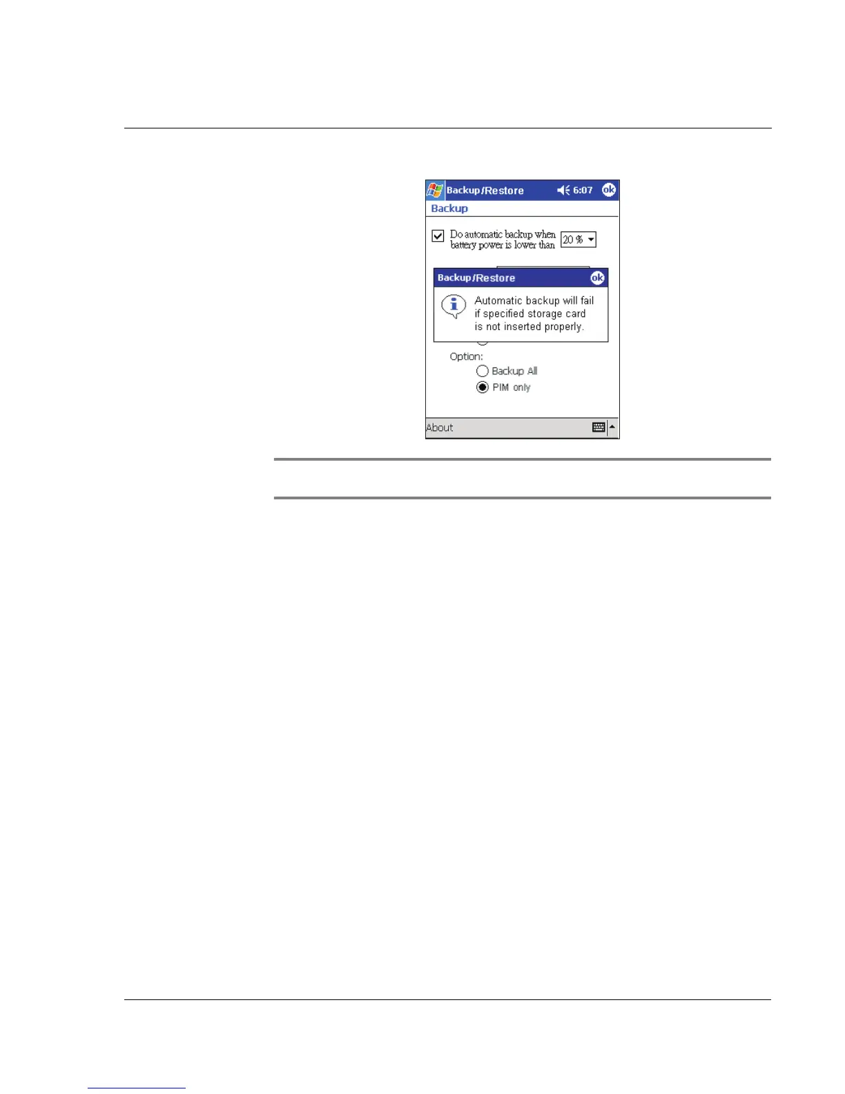 4 Define the backup scope (default: PIM only) from the Option' radio buttons.