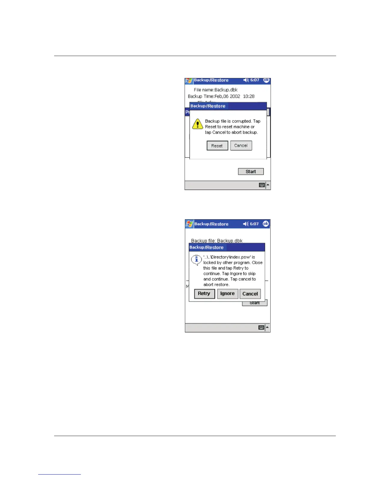 • Close the locked file then tap Retry to continue the restore process.