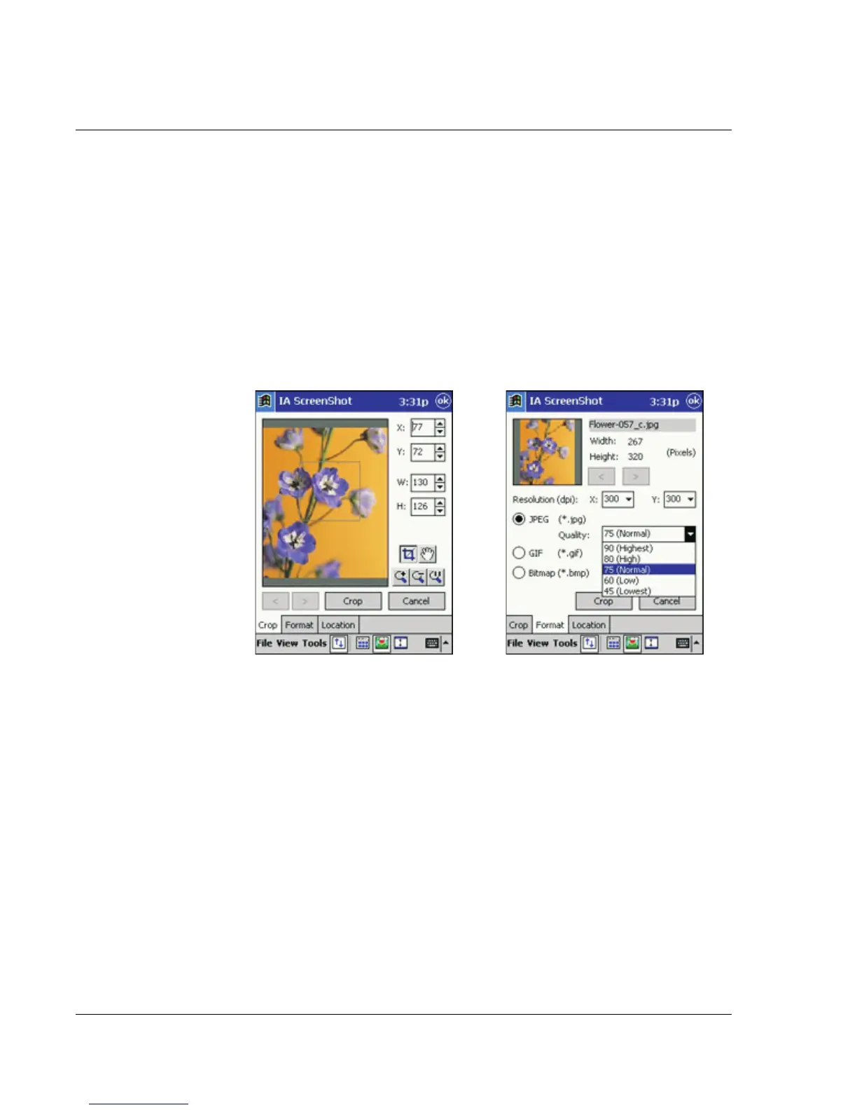 • Crop and Save function allows you to designate any portion of an image and