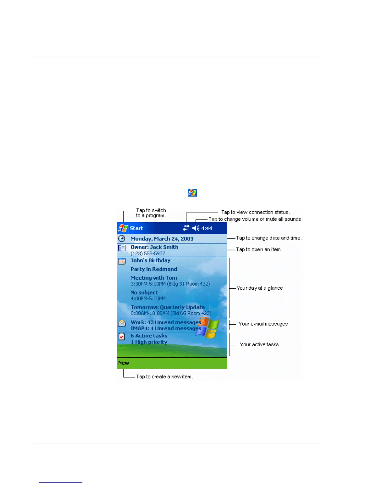 • Tap. Touch the screen once with the stylus to open items and select options.