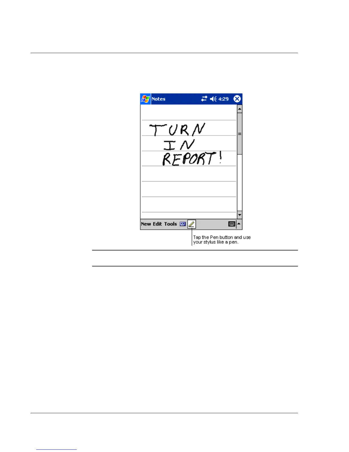 NOTE: Some programs that accept writing may not have the Pen button. See the