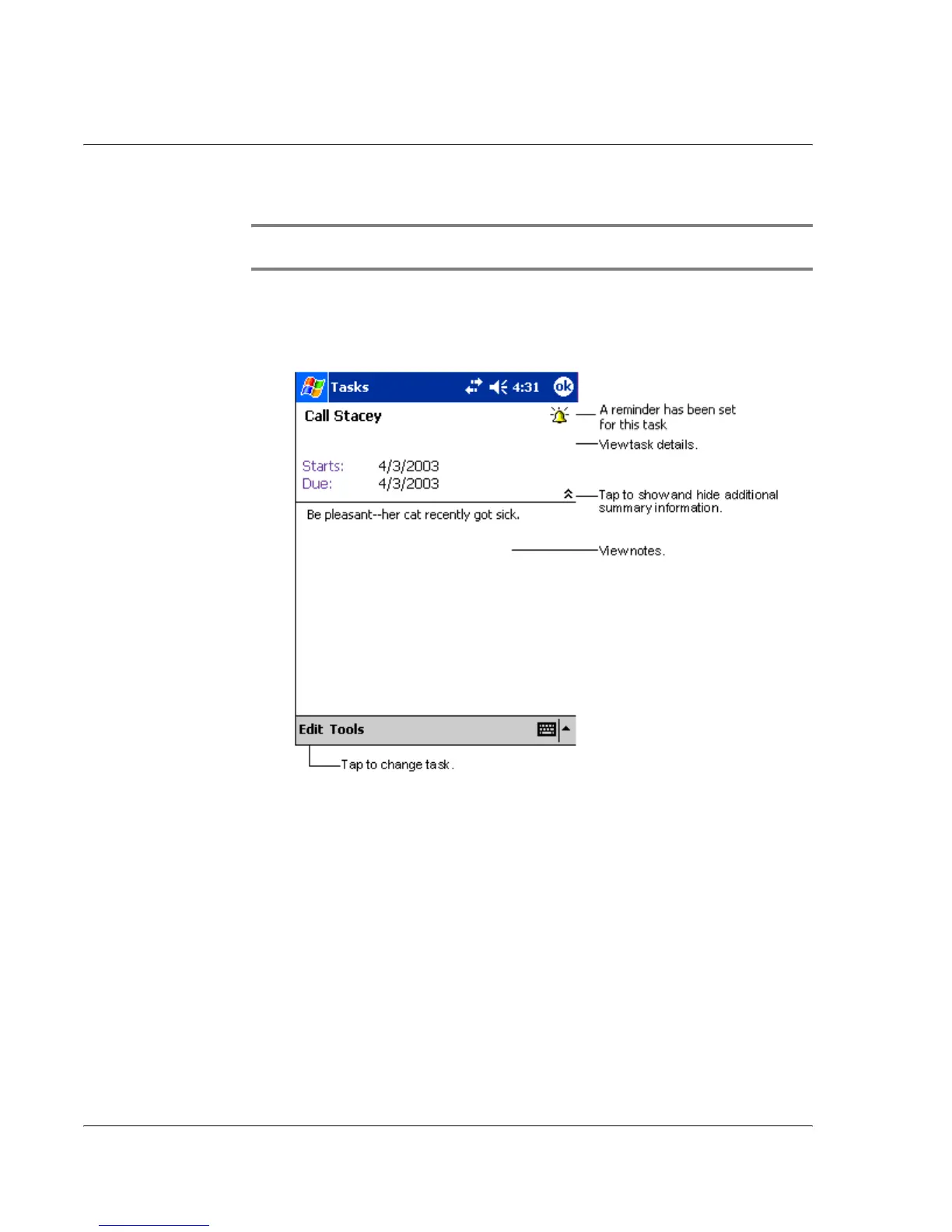 TIP: To quickly create a task with only a subject, tap Entry Bar on the Tools menu. Then, tap