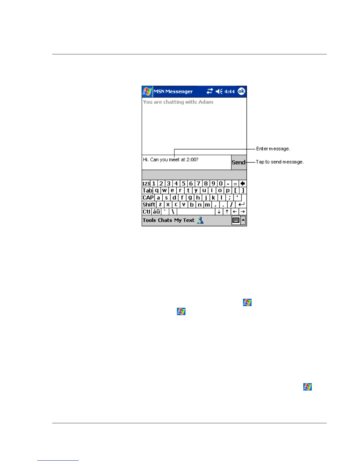 For more information on using MSN Messenger, tap > Programs > MSN Messenger