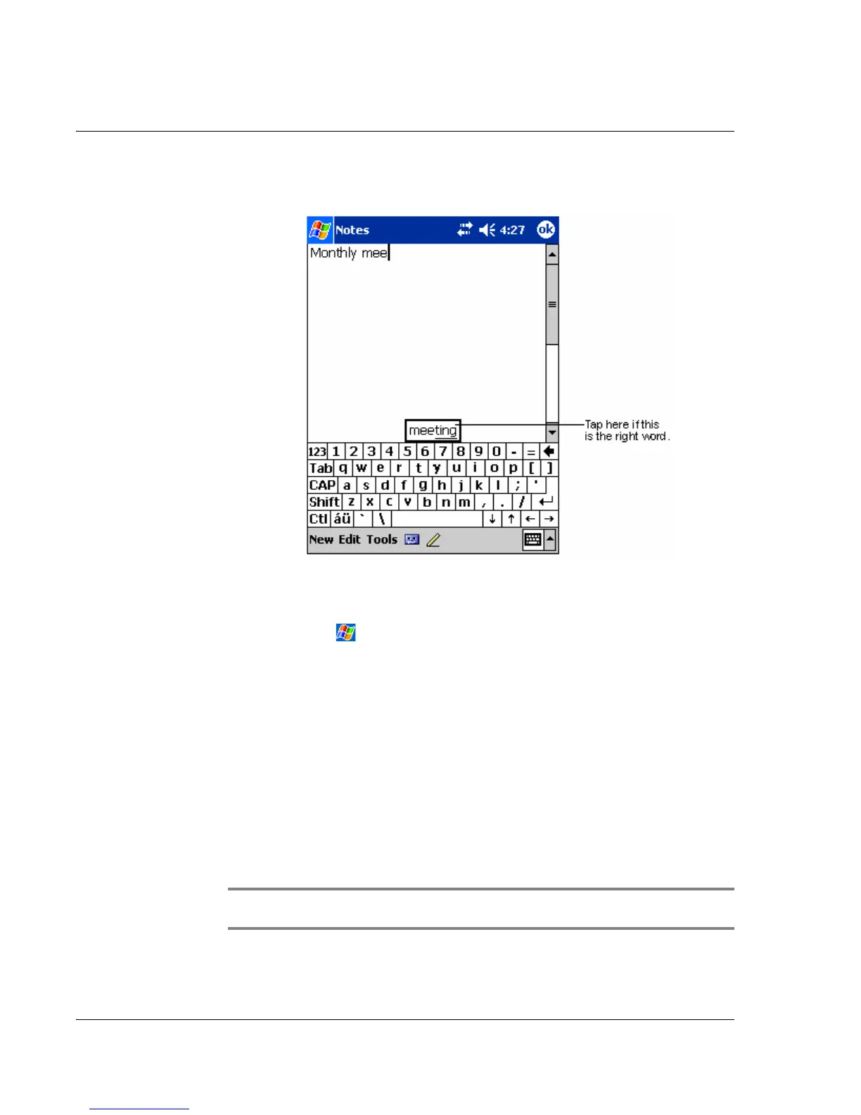 2 On the soft keyboard that is displayed, tap the keys with your stylus.