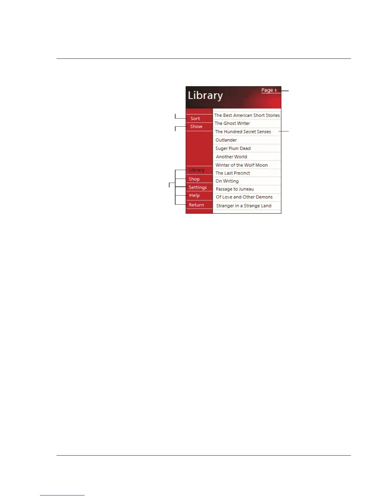 In addition to the text, each book page includes a page number and book title.