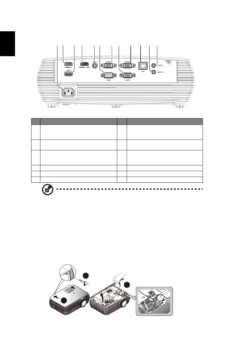 2 Push the cover toward the rear side of projector. (Illustration #b)