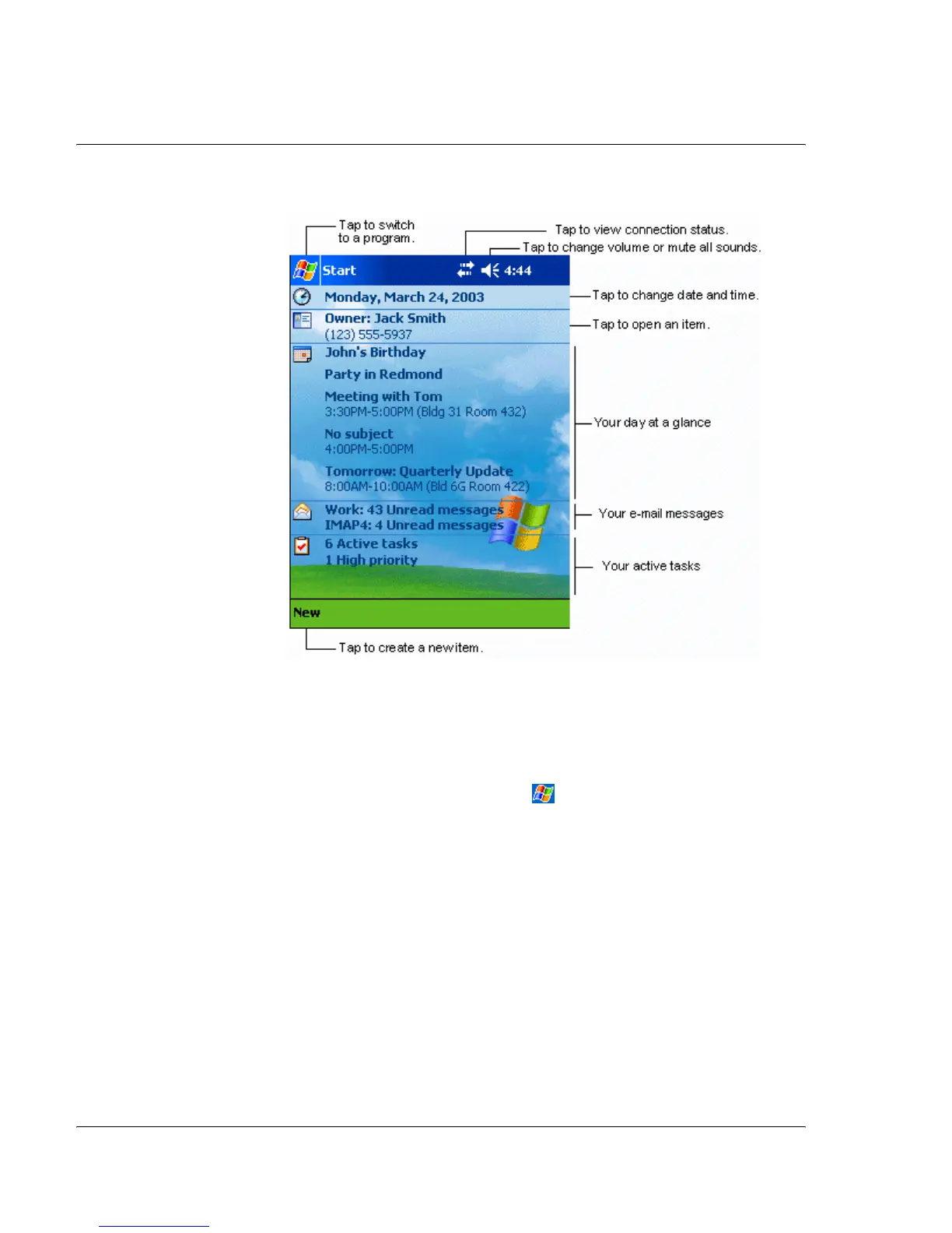 From the Start menu, you can select programs, settings and Help topics. To display the