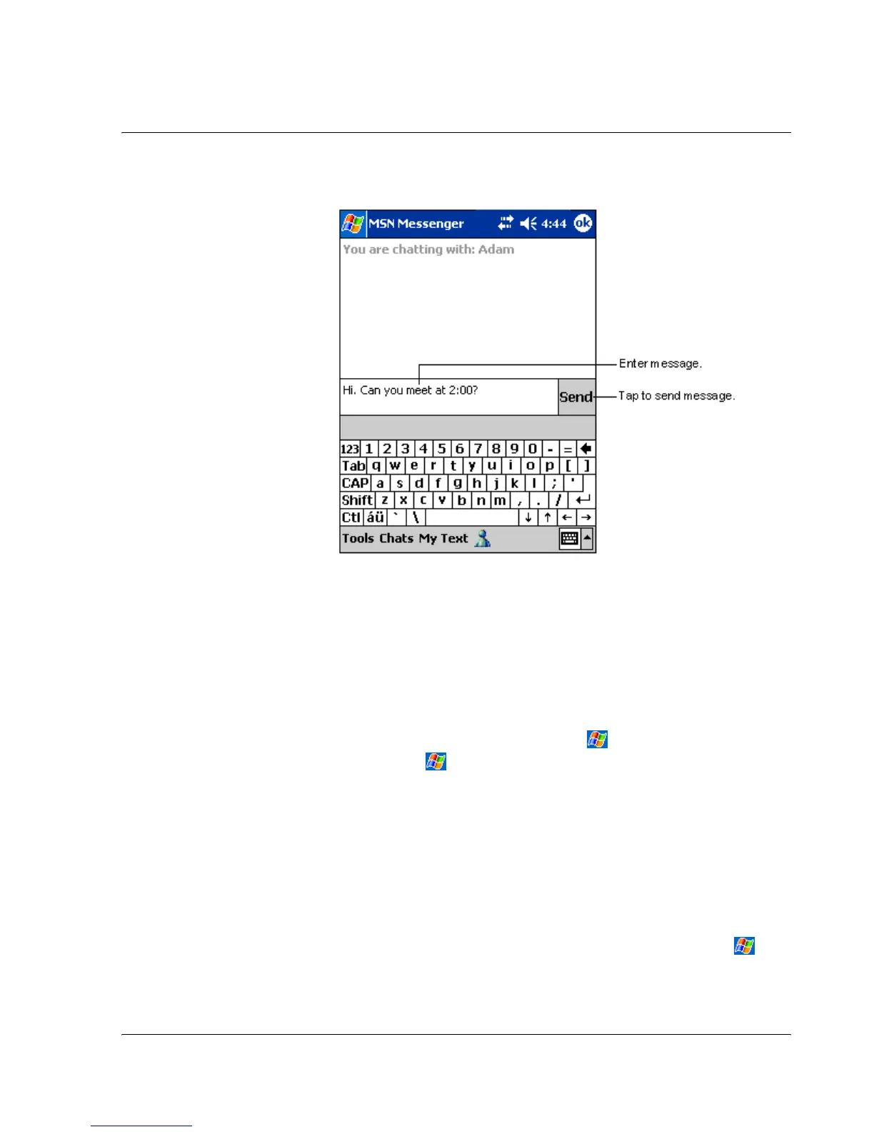 For more information on using MSN Messenger, tap > Programs > MSN Messenger