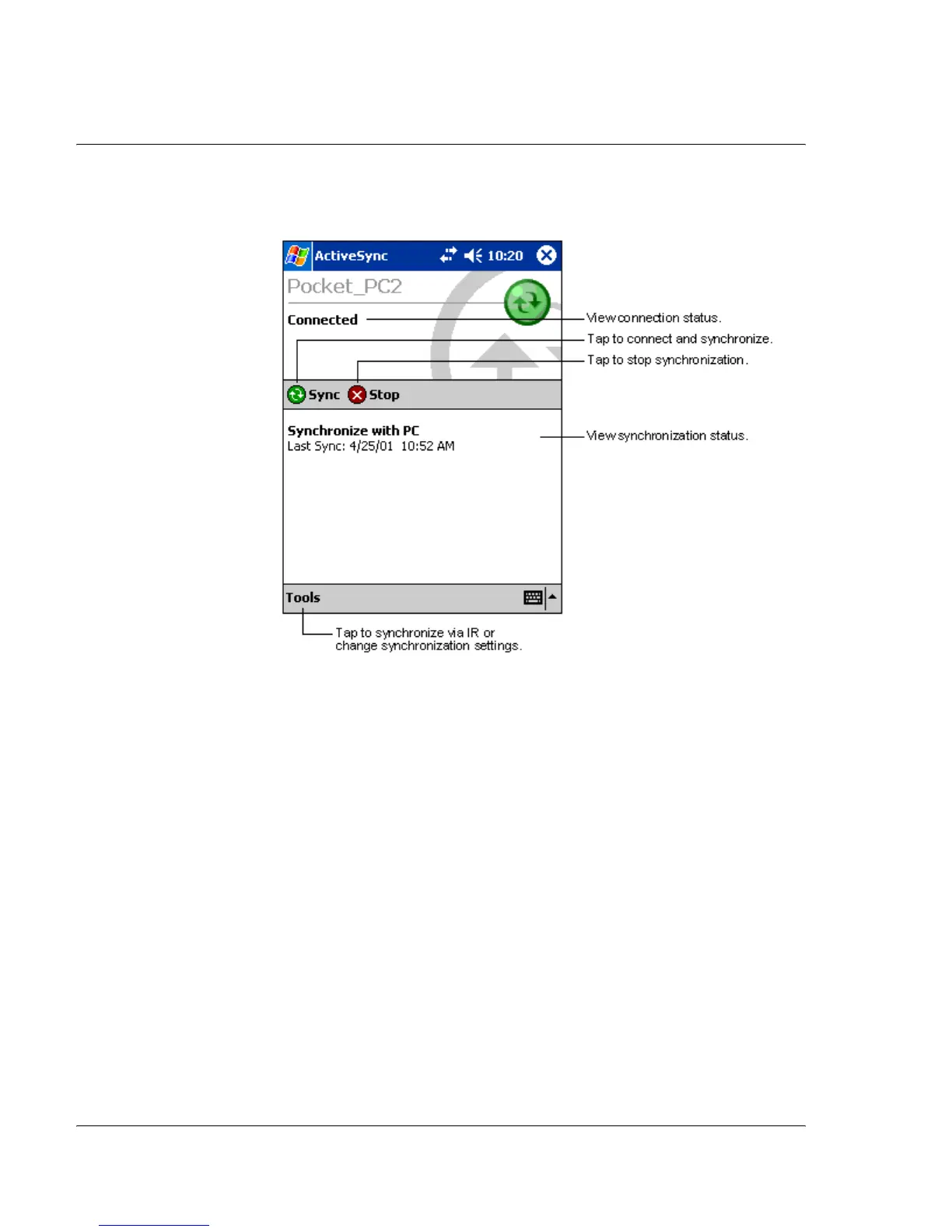 For information about using ActiveSync on your computer, start ActiveSync on your