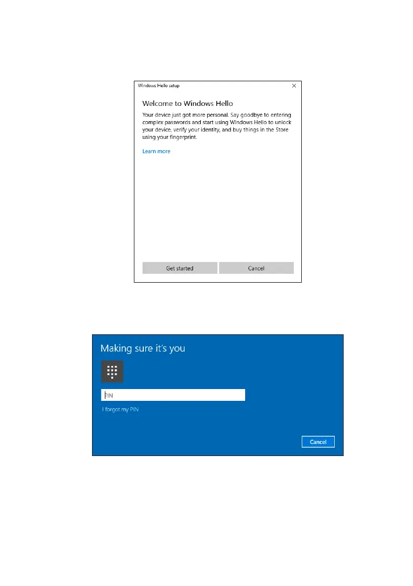 4. In the Windows Hello set up window, select Get started to begin the