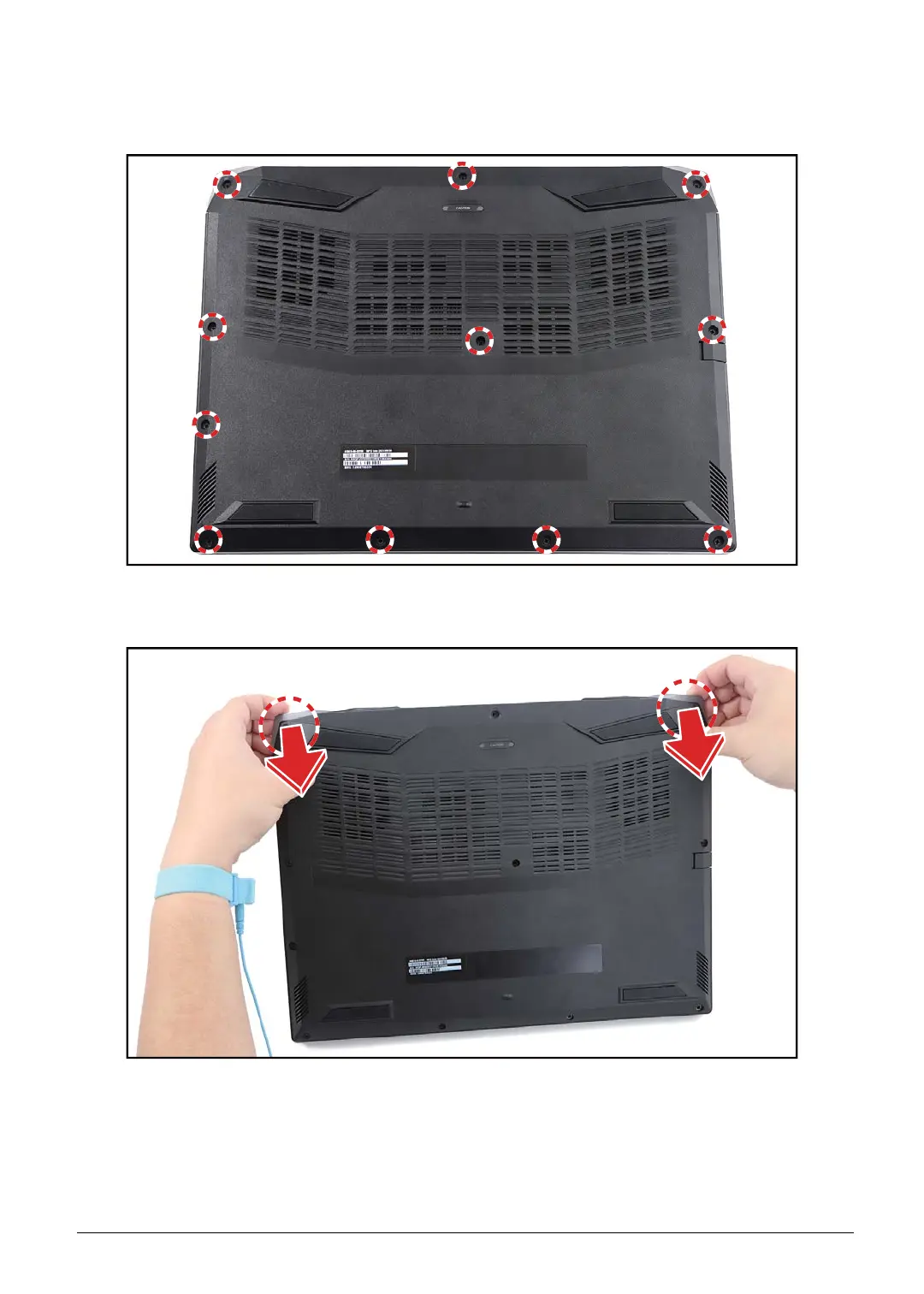 1. Remove the eleven (11) screws securing the lower case to the upper case.