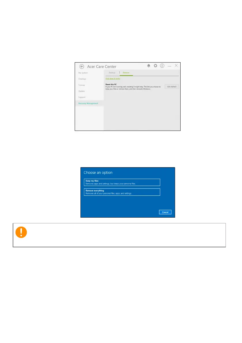 2.Select the Restore tab and click Get started to Choose an option.