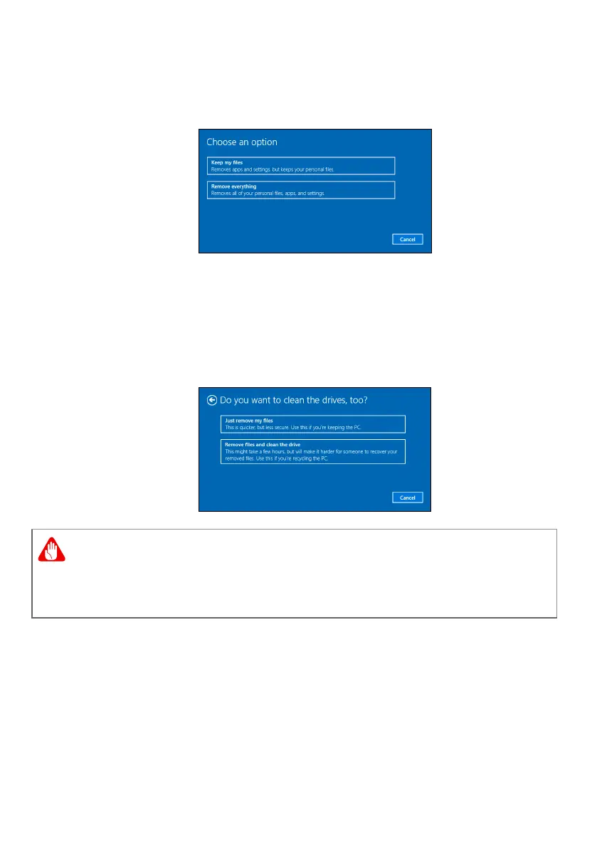 Selecting "Remove files and clean the drive" will remove all of your