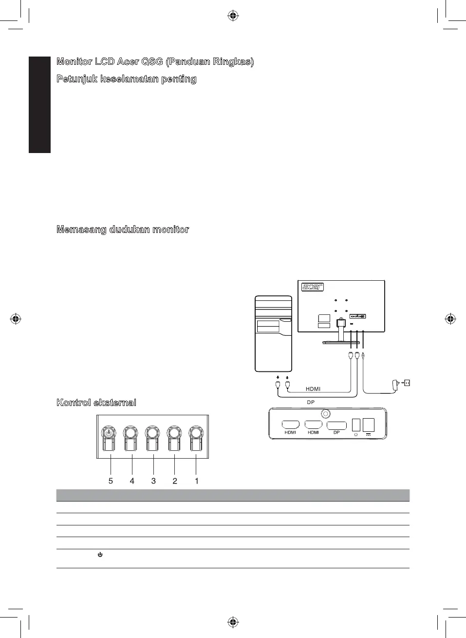 Monitor LCD Acer QSG (Panduan Ringkas)