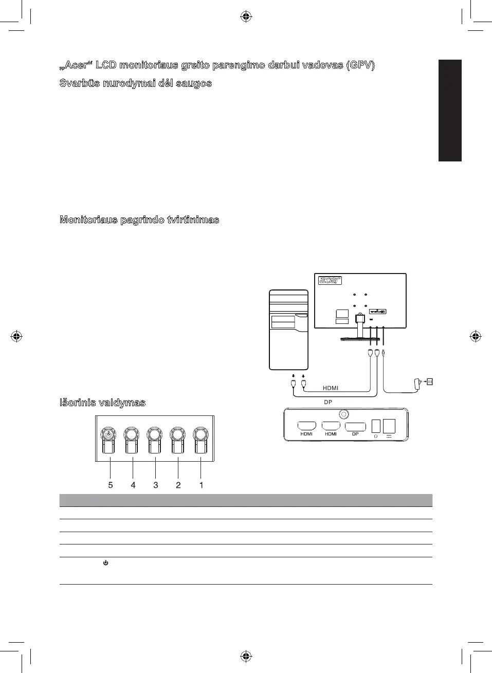 „Acer“ LCD monitoriaus greito parengimo darbui vadovas (GPV)