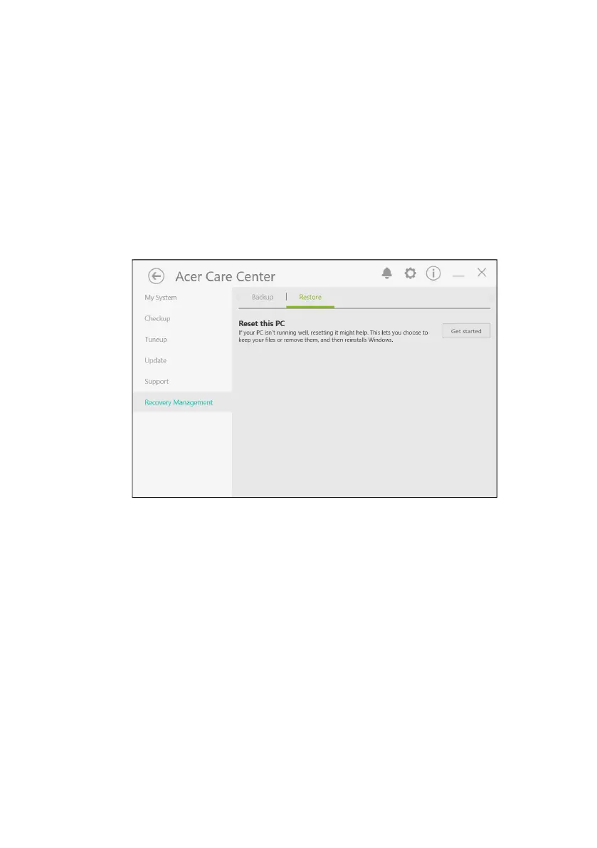 1. From Start, select Care Center in All apps list then Recovery