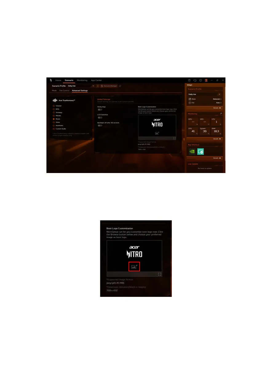Acer TrueHarmony™ tab. Under the Global Settings tab you can