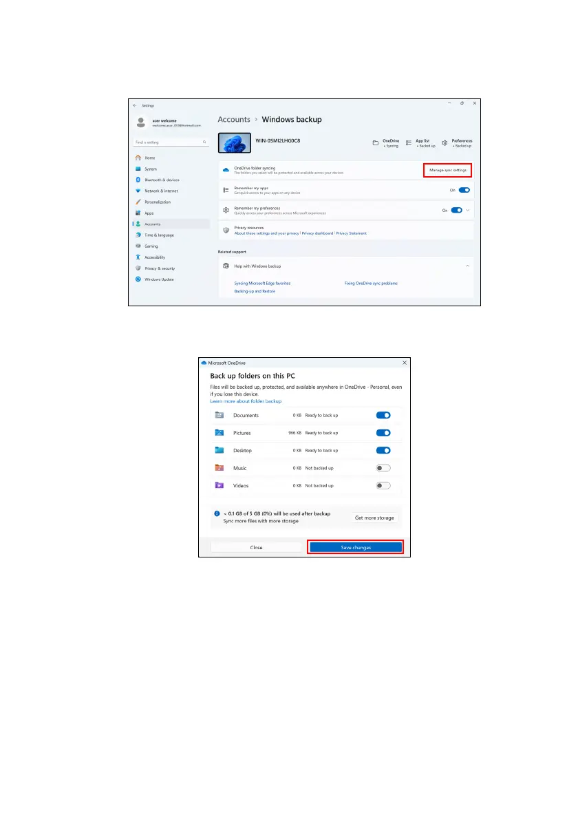 2. Click Manage sync settings for OneDrive folder syncing t o