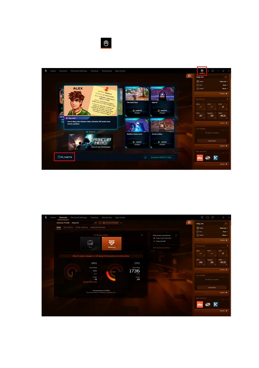 Click the Planet9 icon to view gaming updates. Click PLANET9