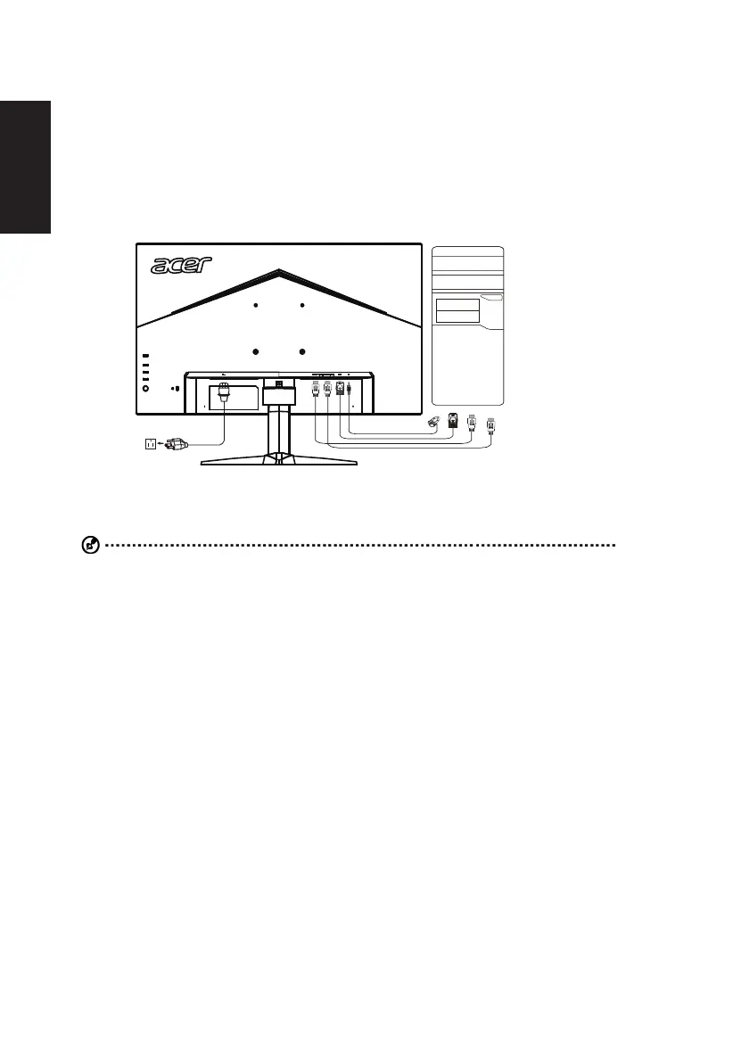 2. Connect the signal cable to the HDMI (optional) and /or DP (optional) input socket of the monitor, and the HDMI
